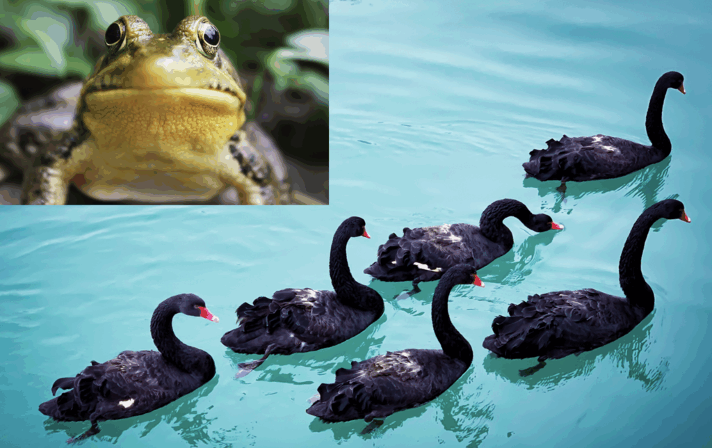 Getting pecked to death by a whole bunch of black swans while swallowing a frog*
