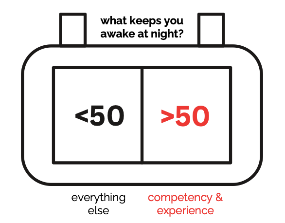 Although all things ‘carbon’ and ‘compliance’ are keeping many awake, it was ‘competency & experience’ that received the vast majority of the vote (>50%) .